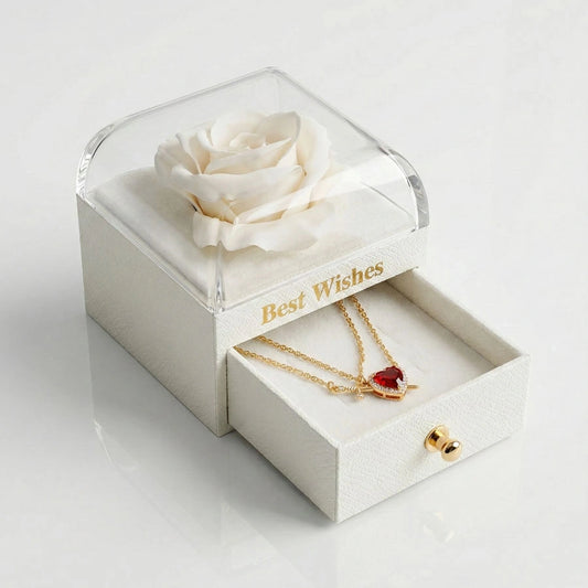 BOÎTE AMOUR ÉTERNEL BLANC AVEC COLLIER CŒUR ET ÉPÉE (2 PIÈCES)